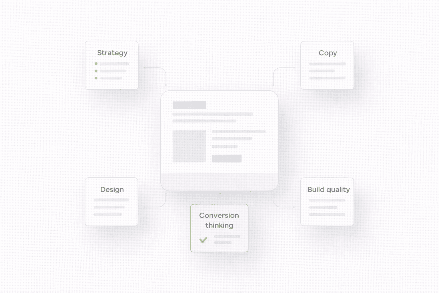 Strategy and research. Does the person or team building your page understand your market, your buyer, and your competitive positioning? Or are they executing a brief you hand them and hoping it converts? Strategy-first work costs more because it requires real thinking before a single pixel is placed. It also tends to produce significantly better results.