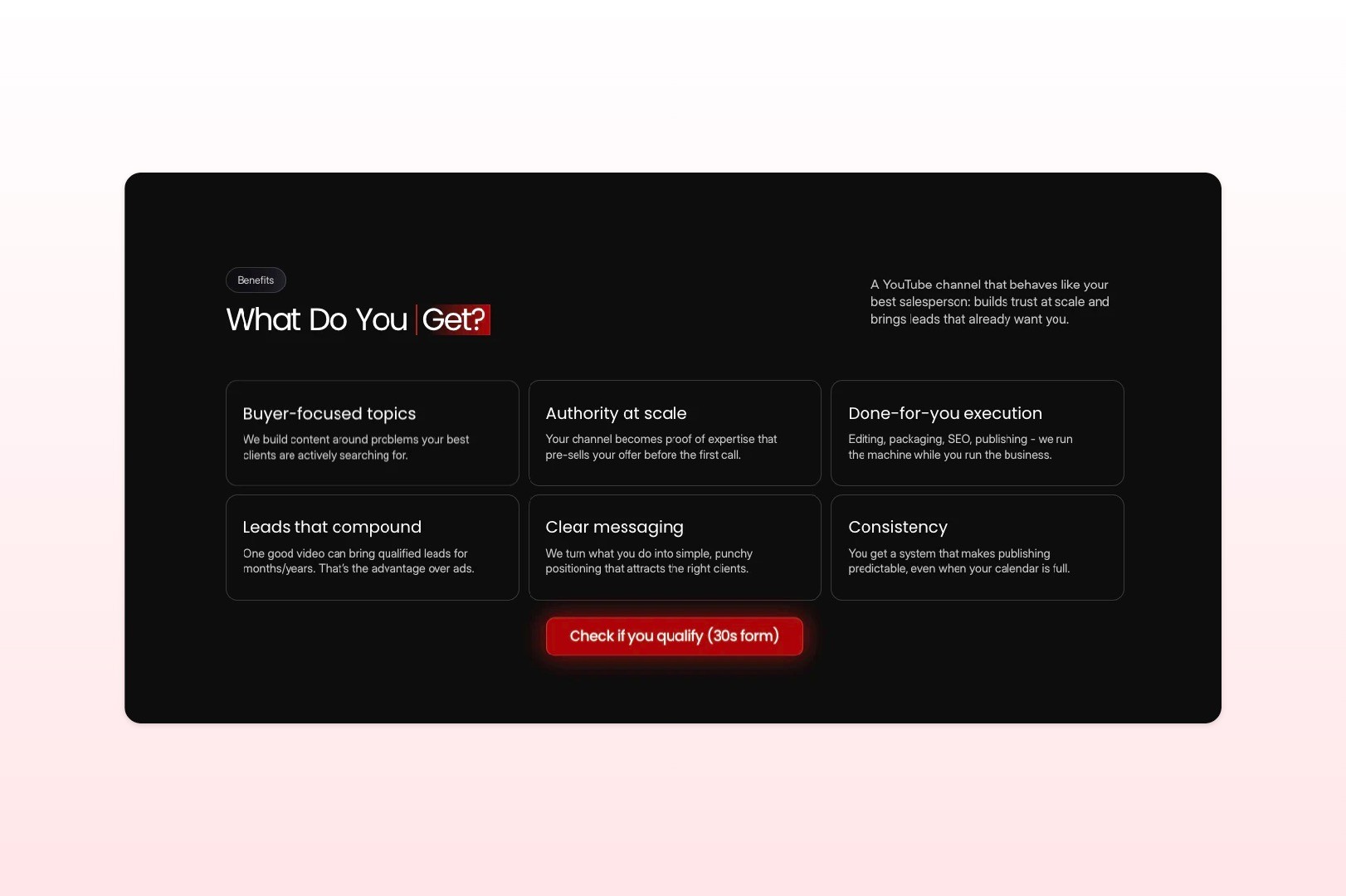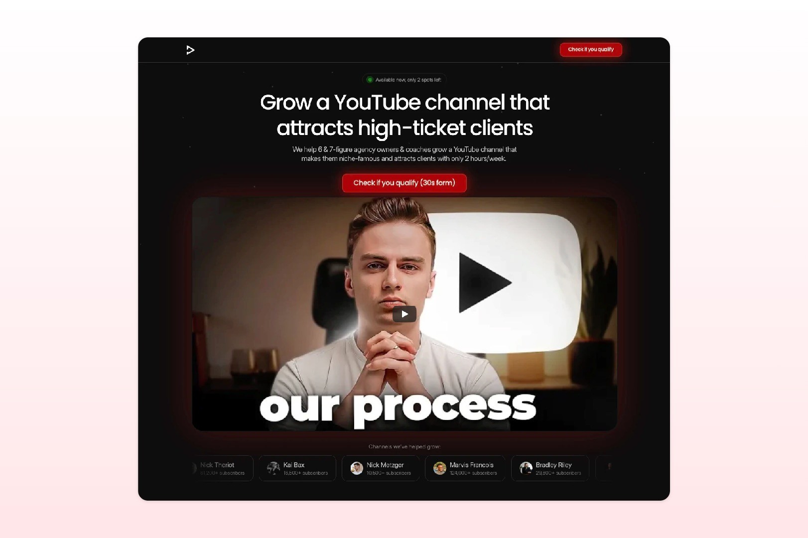 On top of that, this project needed more than just a visual refresh. We also had to make the qualification process smarter. The goal was not simply to get more calls, but to increase the number of calls from people who actually matched the business criteria. That is also consistent with how the current case study describes the previous issues: too many CTAs, disconnected proof and a scheduling process that felt separate from the main journey.