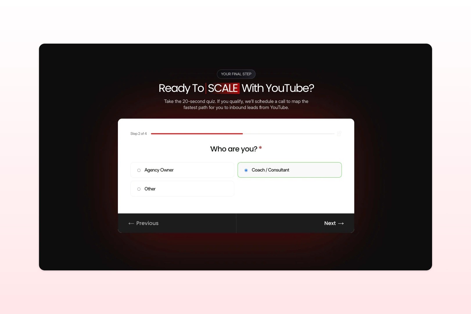 a custom qualification form built to filter leads before the booking step