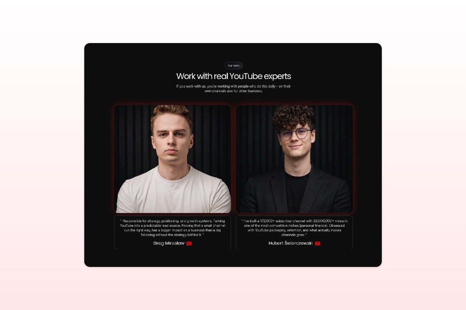 a team section introducing the people behind the offer
