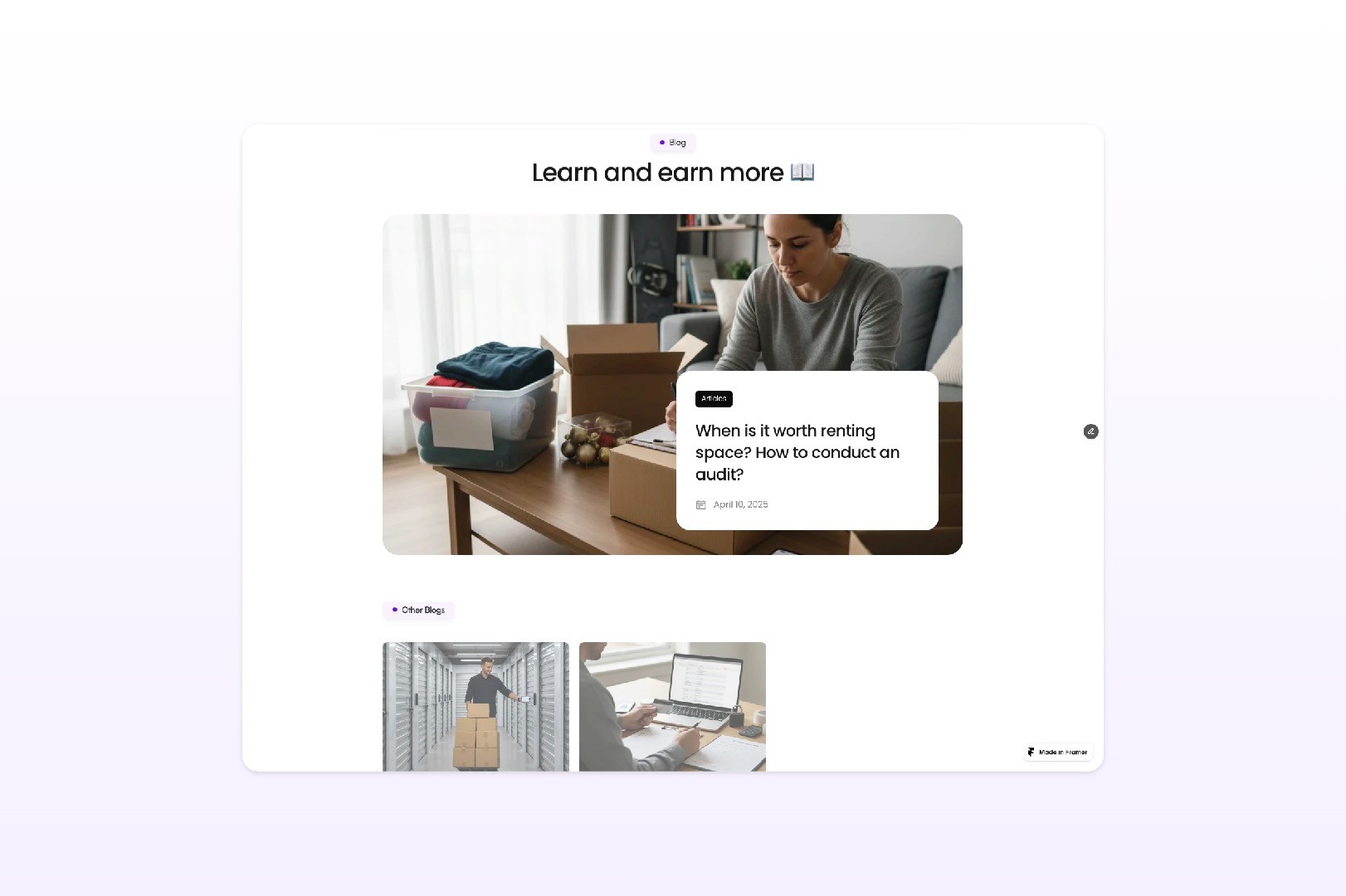The goal was to build a platform where users can easily find available storage space, browse listings with key details, and submit their own space for rent — whether it’s a garage, attic, spare room or a small warehouse. Alongside the core marketplace, the project also needed a blog and SEO-ready structure that could help attract non-branded traffic around storage-related searches. On the live site, this structure is already visible through listing discovery, FAQ, blog and the “Publish space” flow.