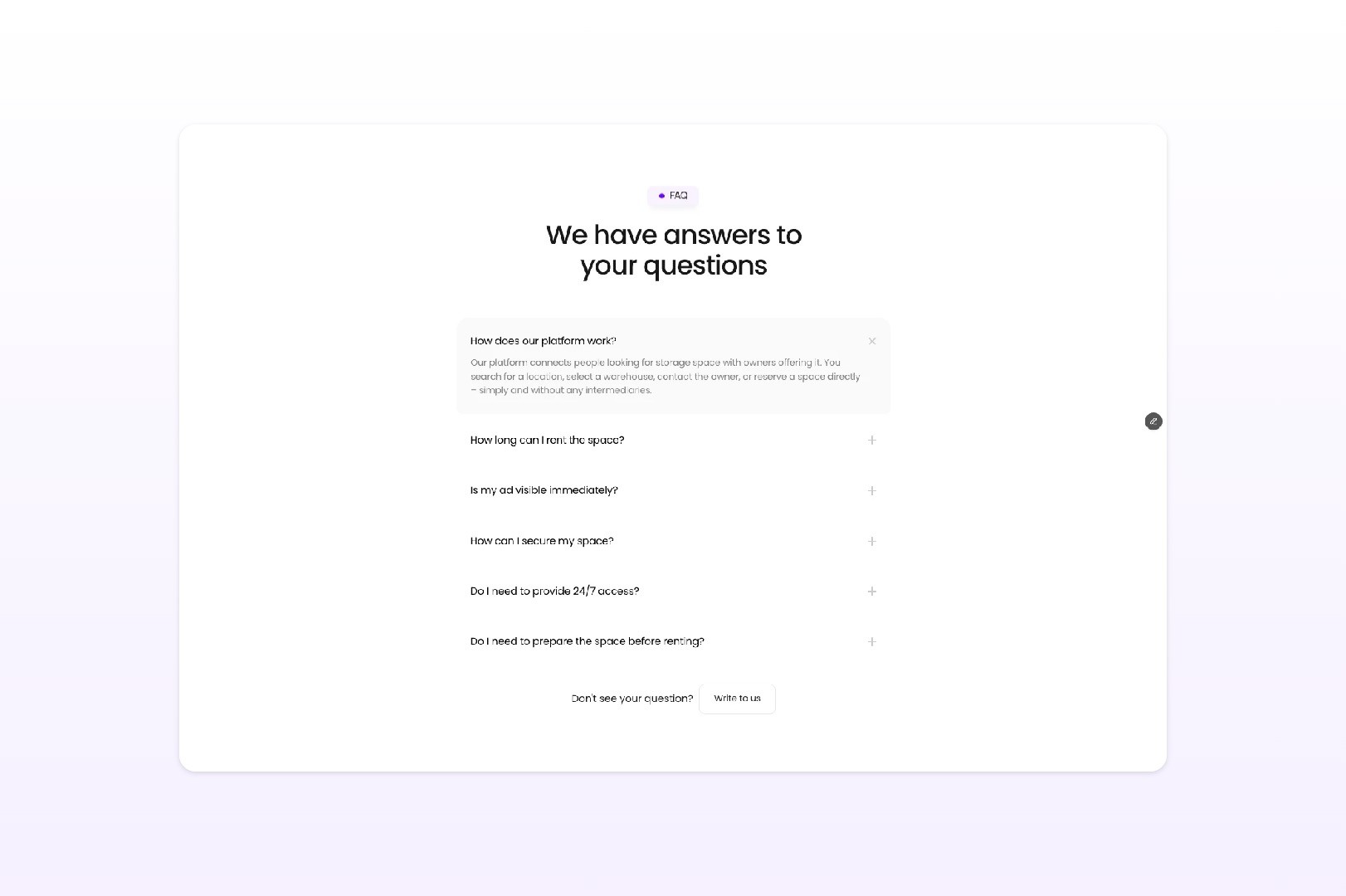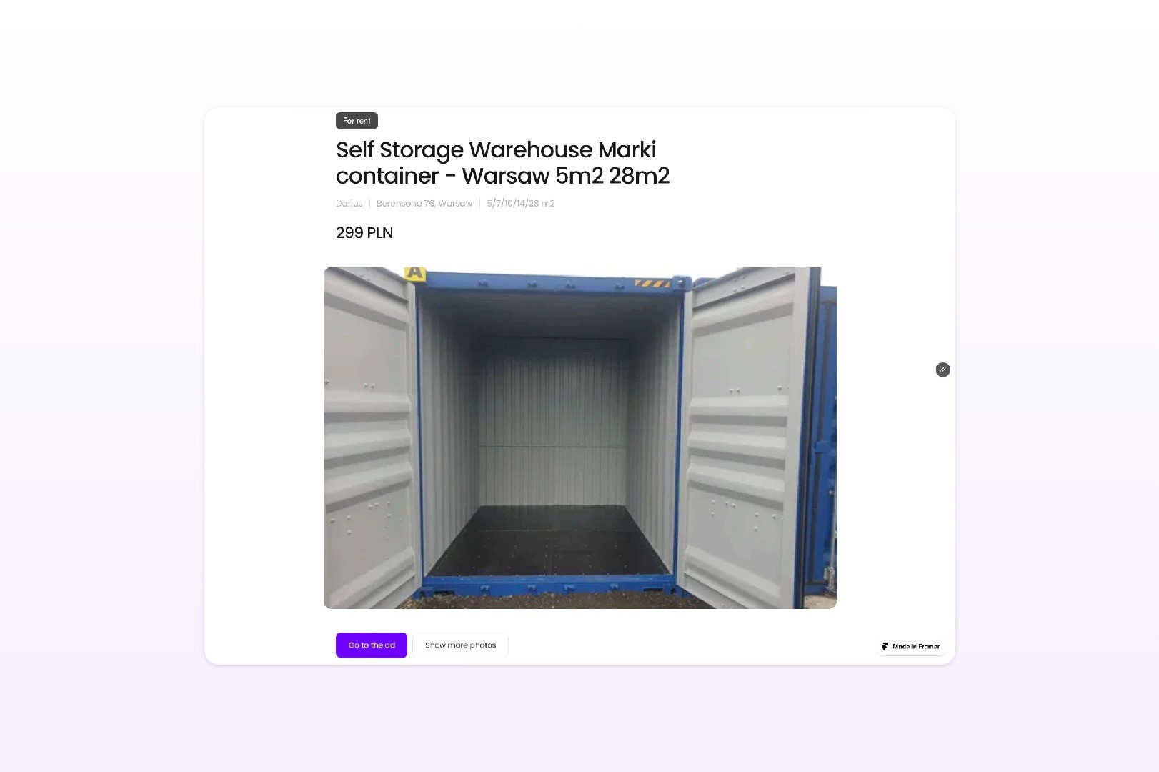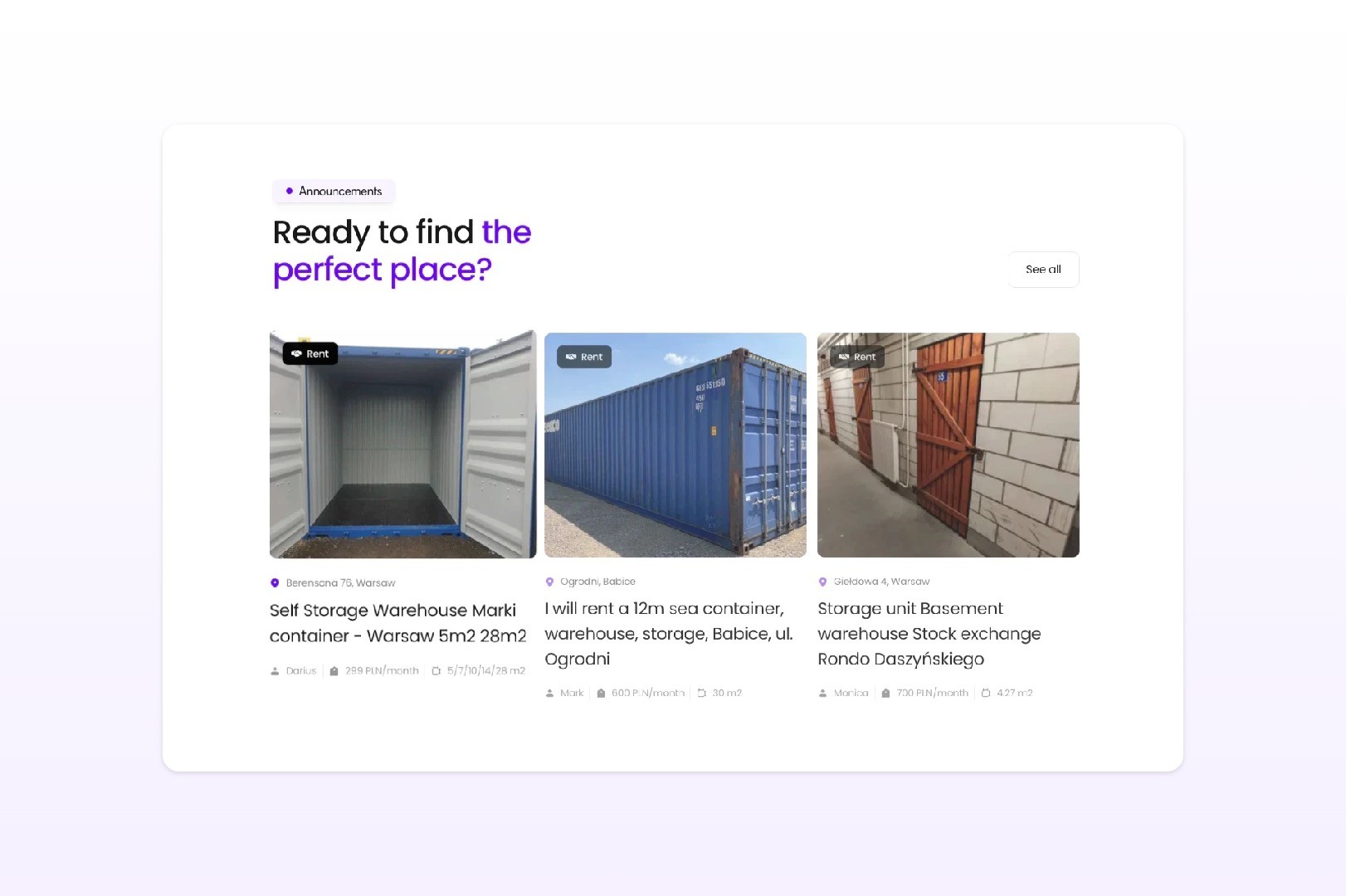 On one side, the platform needed to help users quickly find a suitable space based on location, size, price and listing details. On the other, it had to make it easy for owners to submit their own offers and present them in a way that feels clear, trustworthy and structured.