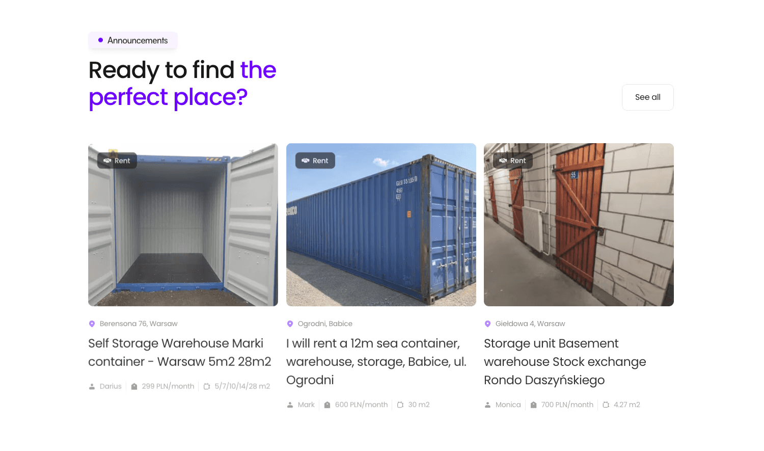 Lokero set out to launch Poland’s first peer-to-peer storage marketplace, connecting people with unused space to those who needed it. The challenge was not only to build the product itself but also to establish trust in a completely new category while making the path to signup as simple and frictionless as possible.