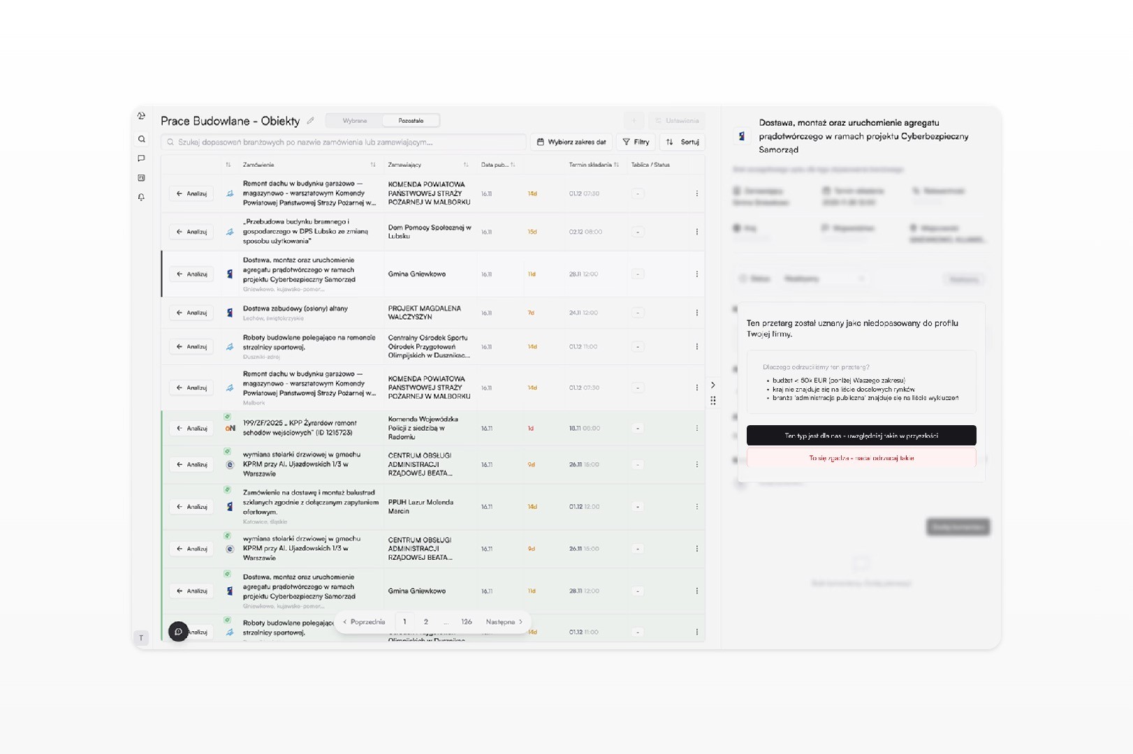 We also redesigned the tender list itself to make high-volume evaluation faster. The interface surfaces the most important information earlier — making it easier to scan, compare and decide without opening every tender one by one. The result is a system that feels less like a static search tool and more like an active decision-support layer.