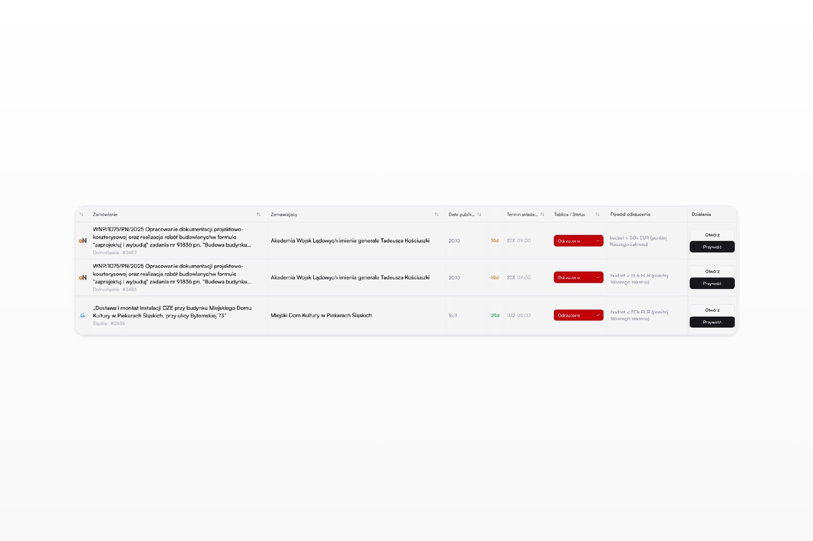 a redesigned tender list built for quicker scanning and lower cognitive load