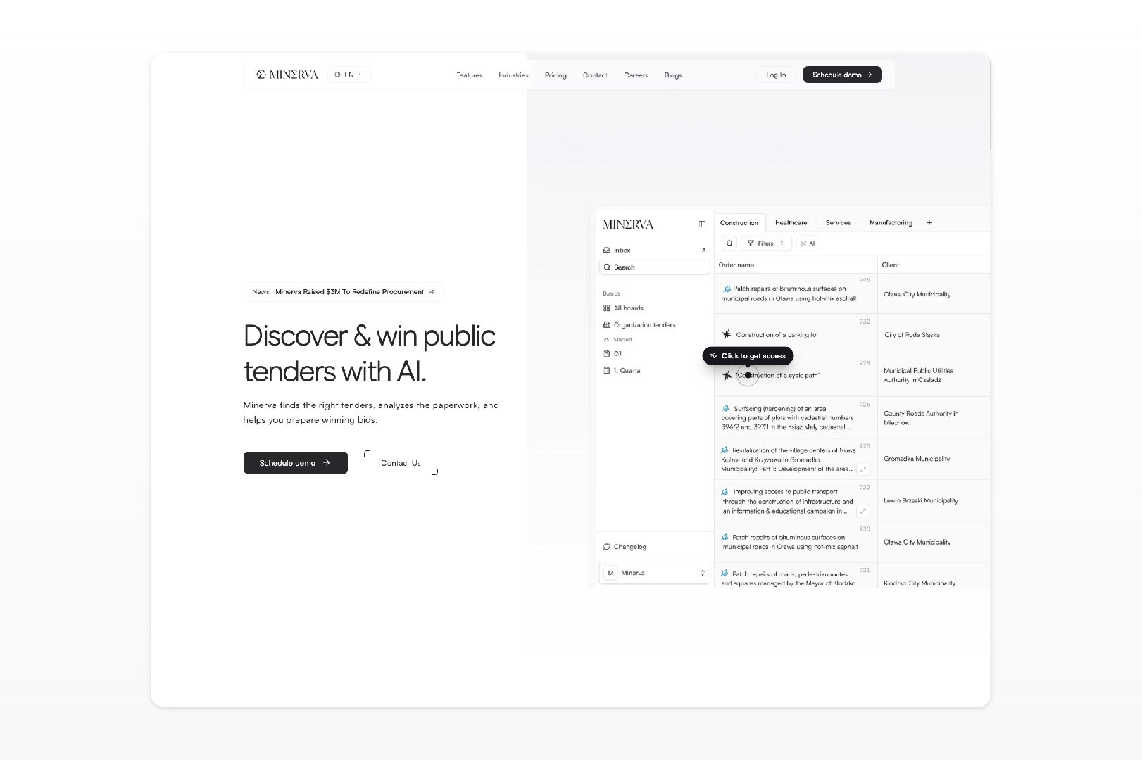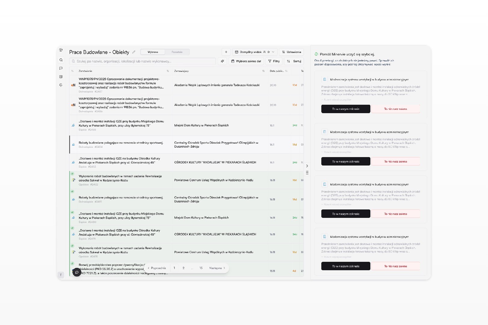 A redesigned product experience focused on helping Minerva learn more naturally and generate more accurate tender matches over time.