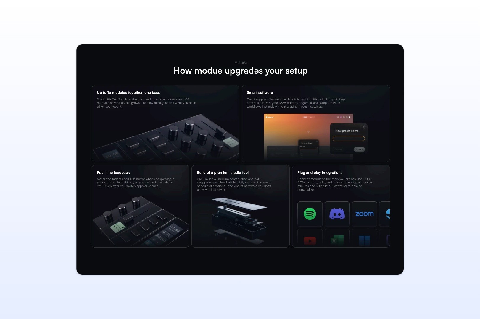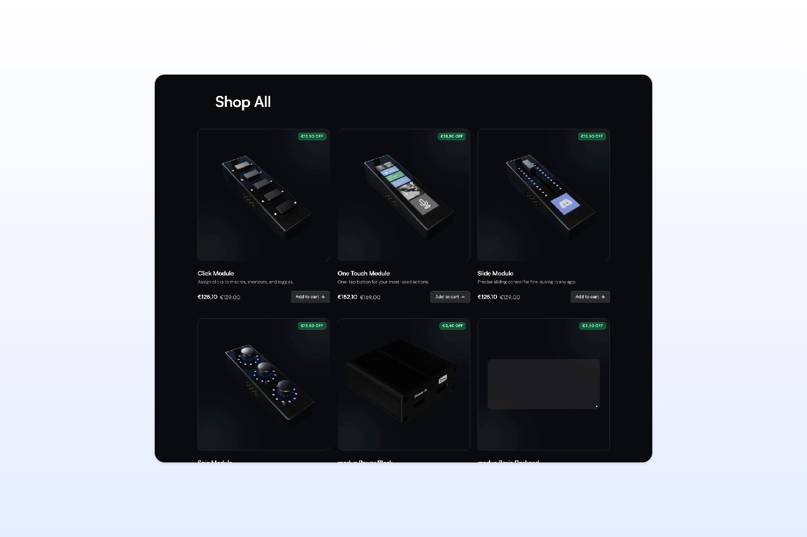 The second path was designed for flexibility: a “Build your own setup” journey that lets users browse all modules and create their own configuration directly inside the store. This allowed modue to move away from the previous paid configurator and replace it with a cleaner, more scalable buying flow built into the ecommerce experience itself.