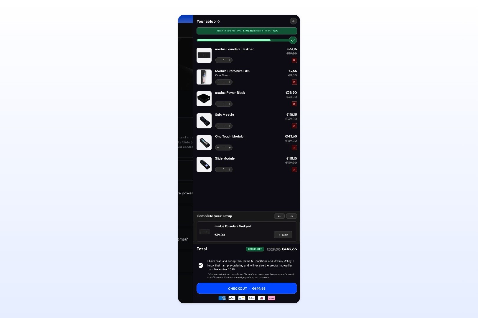 Instead of forcing users into a fragmented and overly complex buying process, modue now gives them two clearer ways to buy: choose a setup fast or build one from scratch. The experience is easier to understand, the pre-order model is communicated much more clearly, and the entire store feels more polished, more intentional and more ready to support growth.