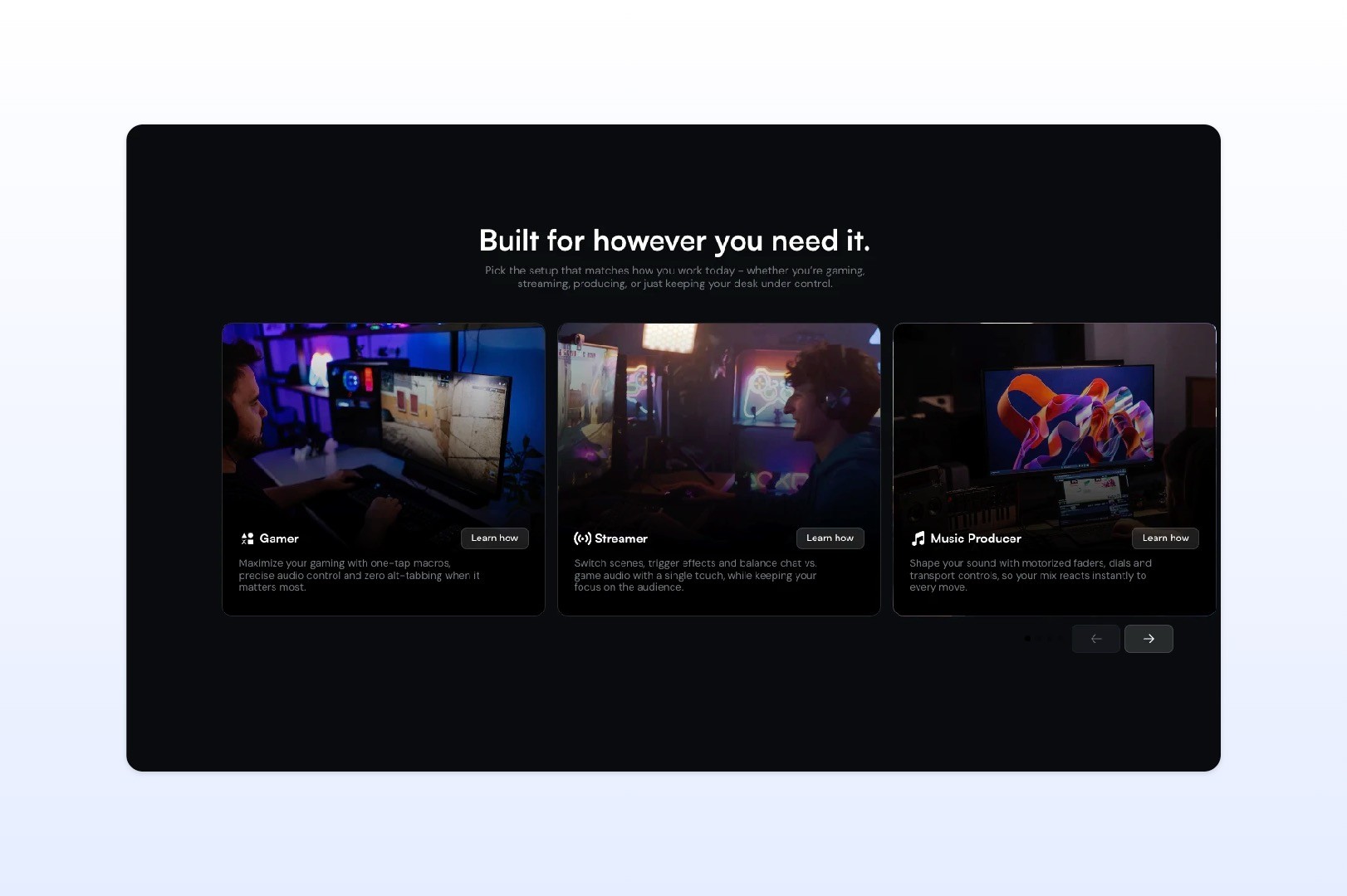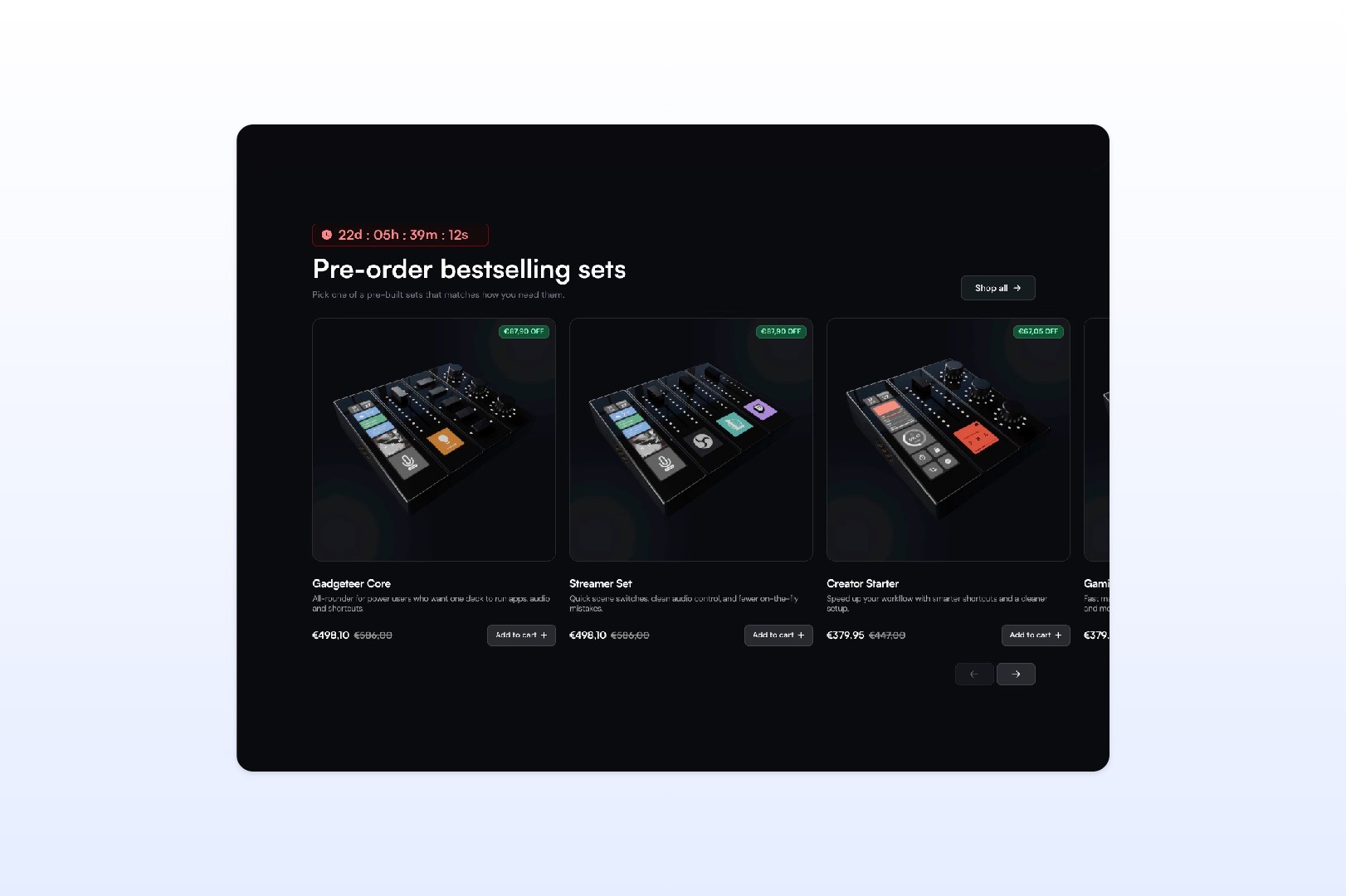 The first one was designed for speed: ready-made bestselling sets placed high on the page, so users could quickly choose a setup that matches their use case without having to build everything from scratch. Whether someone is a gamer, streamer, music producer or content creator, the decision now starts from an easier and more guided place.