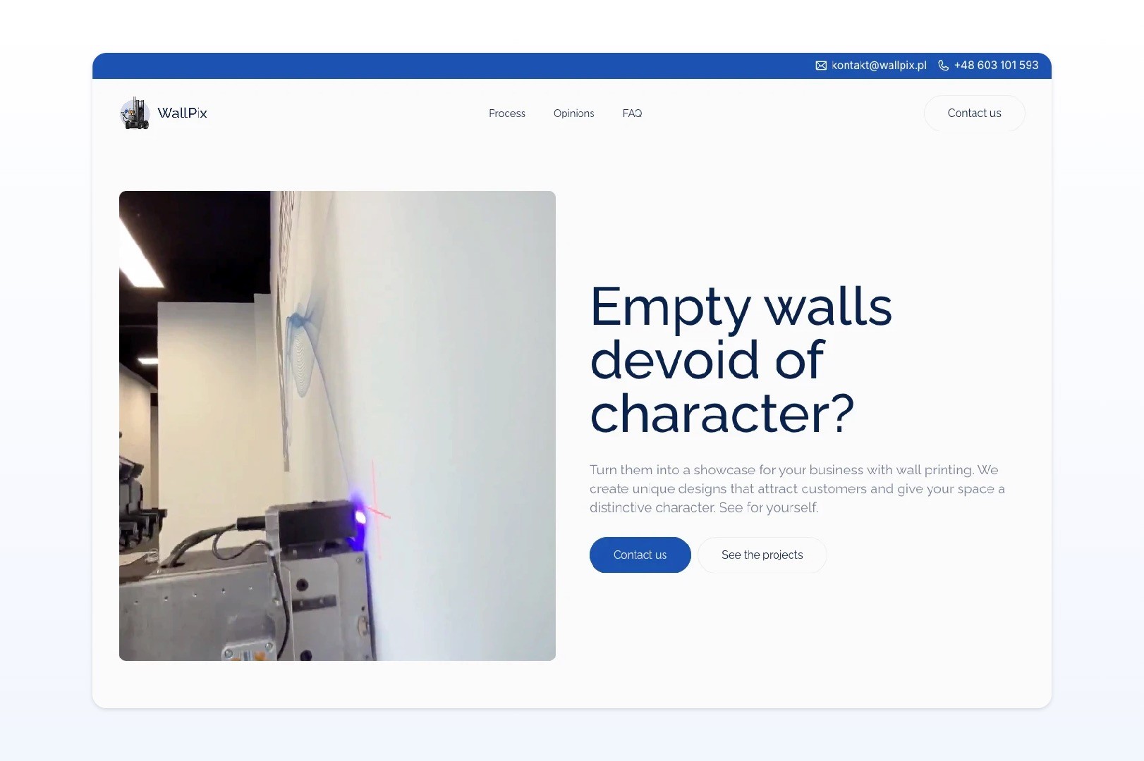 Their offer — large-scale graphics printed directly on walls — had real commercial potential, but the website needed to do much more than just look good. It had to explain what wall printing actually is, show why it is worth choosing over more traditional solutions, and turn that curiosity into qualified conversations with businesses looking for a custom interior or branded space solution.