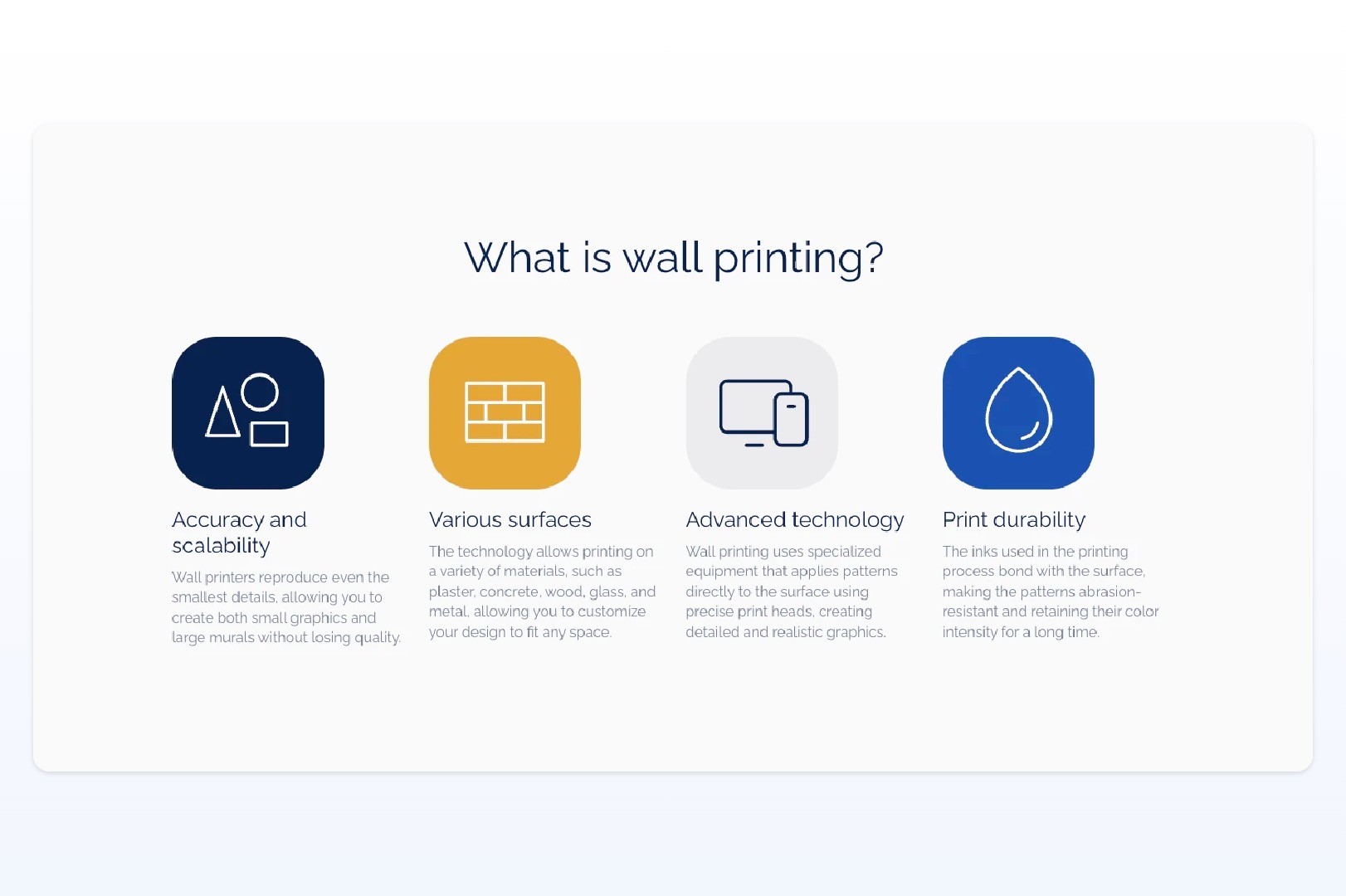 an educational structure explaining what wall printing is and how it works